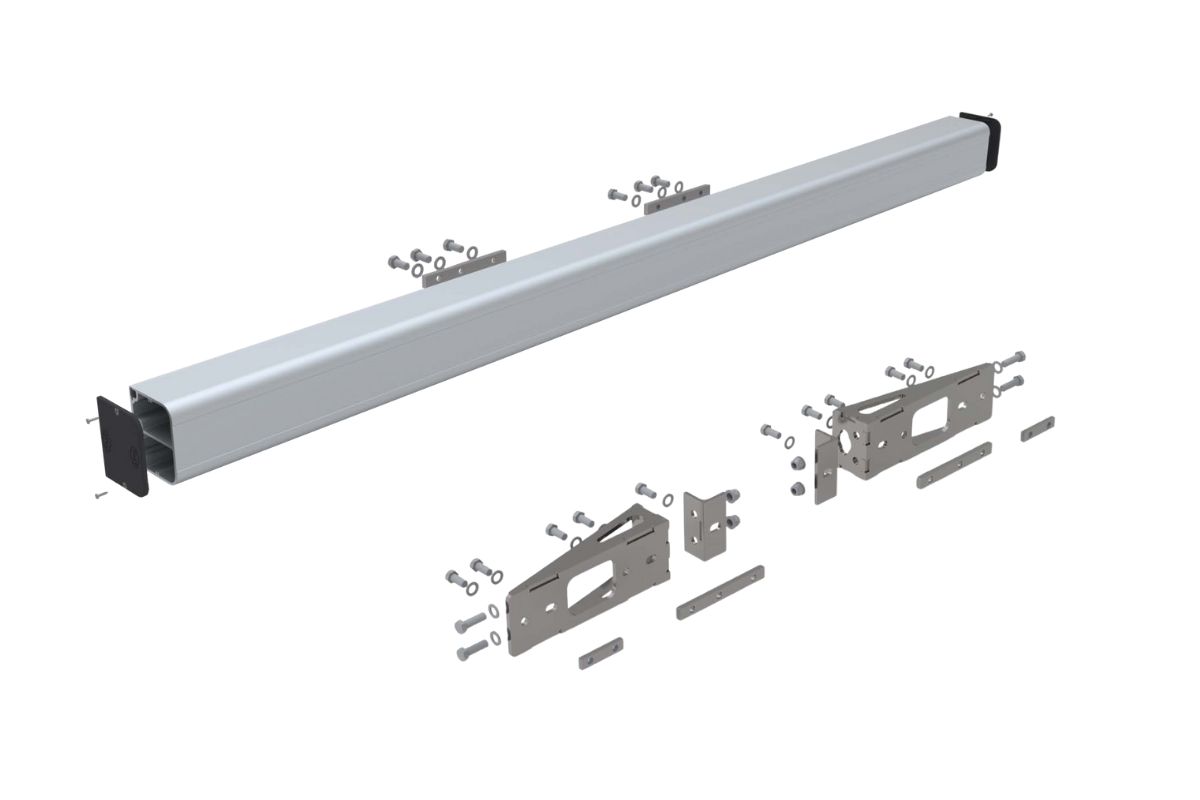 Korkeus 129 mm, pituus vaihtoehdot 2400 mm ja 2550 mm, voidaan asentaa 60 mm ulkopuolelle.