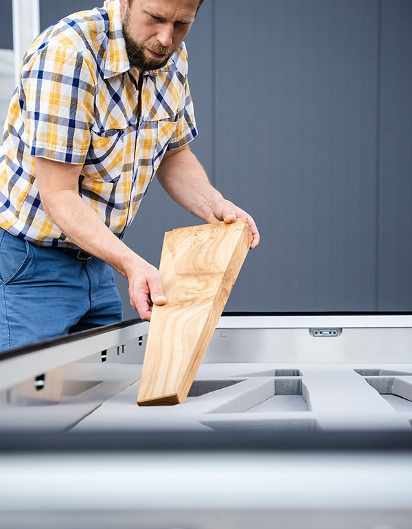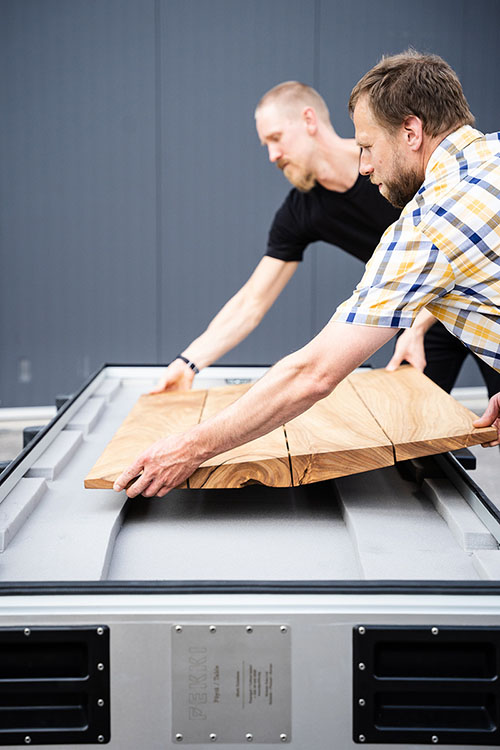 TMT pääsi ottamaan uuden haasteen vastaan ja räätälöimään kuljetuslaatikon ainutlaatuisten Pekki-pöytien kuljetusta varten. Pekki-pöydät valmistetaan Suomessa kotimaisista, pihoilta ja puistoista kaadetuista puista, joille ei ole muuta käyttöä löytynyt, jotta materiaali ei menisi hukkaan. Pöytien valmistus on kärsivällinen projekti ja jokainen on oma uniikki kappaleensa. Koska pöytiä valmistetaan rajattu määrä, on tärkeää, että kuljetus on turvallista sekä suunniteltu tukemaan pöydän osia.