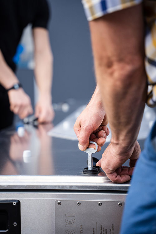 TMT:n kuljetuslaatikot perustuvat kevyeen rakenteeseen, iskunkestävyyteen sekä pölyn- ja vedenpitäviin ominaisuuksiin, jotka takaavat äärimmäisen suojan ja turvallisen kuljetuksen näille käsintehdyille pöydille. Laadukkaasta alumiinista valmistettu ja korkealaatuisia komponentteja hyödyntävä kuljetuslaatikko on huolellisesti suunniteltu sopimaan täydellisesti Pekki-pöytien osien mittoihin. Tämä takaa sen, että jokainen pöydän osa pysyy suojassa ja turvassa kuljetuksien ajan.